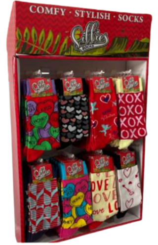 Sillies Pre-Packed 48 Piece Mini Valentine Sock Shipper