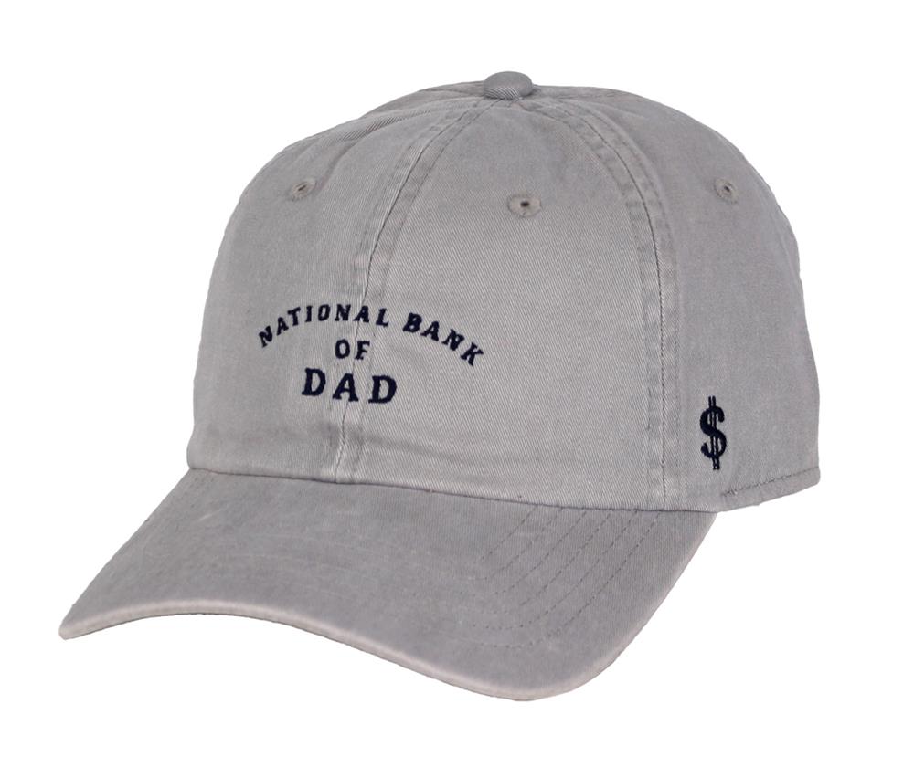 The "National Bank of Dad" cap is the perfect blend of humor and practicality, making it an ideal gift for any father who often finds himself acting as the family's ATM. This cap features a relaxed, low-profile design in a soft, light gray hue, giving it a casual yet stylish appearance. The embroidered text on the front proudly declares "National Bank of Dad" in bold navy blue letters, making it clear who the real financial superhero of the household is.
