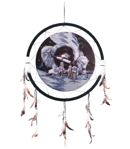 Honor the sacred symbol of the White Buffalo with this 24" dream catcher. Handcrafted with care, it combines powerful spiritual meaning with traditional craftsmanship to protect your dreams and inspire peace.