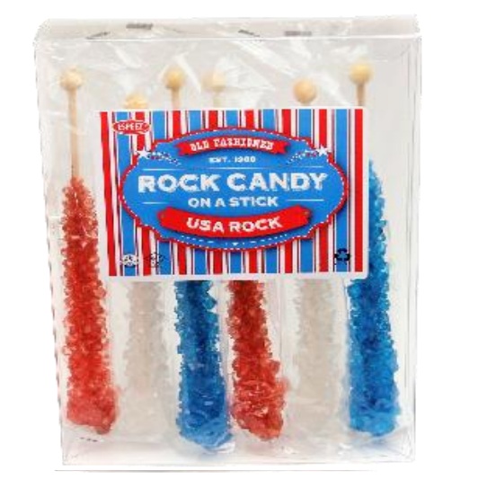 Show off patriotic pride with Rock Candy on a Stick USA Mix—a bold 6-count assortment of 22g crystal candy sticks in red, white, and blue colors with classic fruity flavors. Perfect for summer holidays and Americana-themed displays, this nostalgic treat delivers strong visual impact and reliable impulse sales. A compact seasonal favorite built for attention-grabbing merchandising.