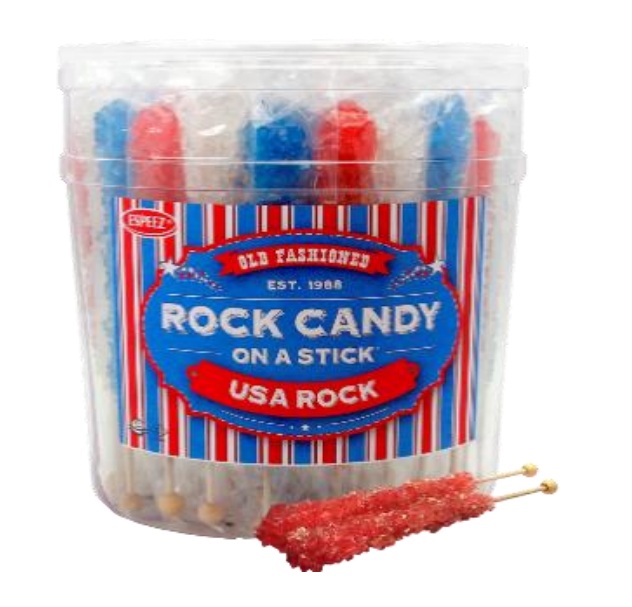 Show off red, white, and blue pride with USA Rock Mix Rock Candy on a Stick—a patriotic assortment designed for maximum seasonal impact and impulse appeal. Featuring bold patriotic colors and classic fruity flavors, this nostalgic treat is perfect for summer sets, holiday displays, and Americana-themed merchandising. Packed in a convenient 36-count tub, it’s a standout performer for high-visibility retail programs.