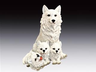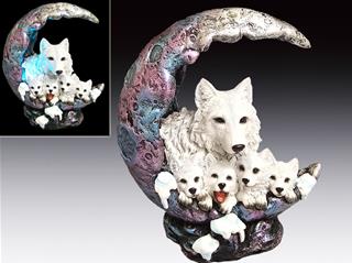 Snow Wolf Mom with Four Cubs on the Moon LED