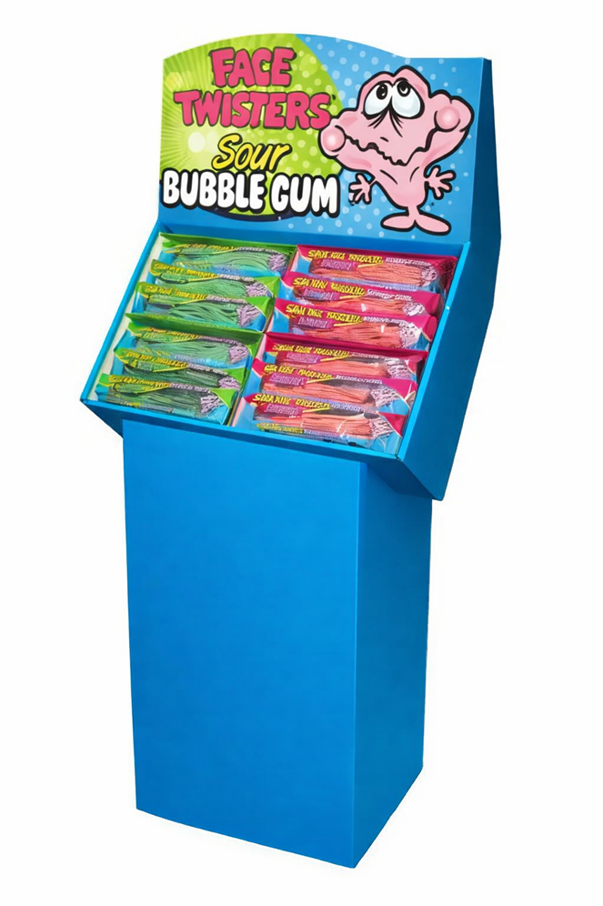 Face Twisters 96 Piece Sour Bubble Gum Straws Floor Display